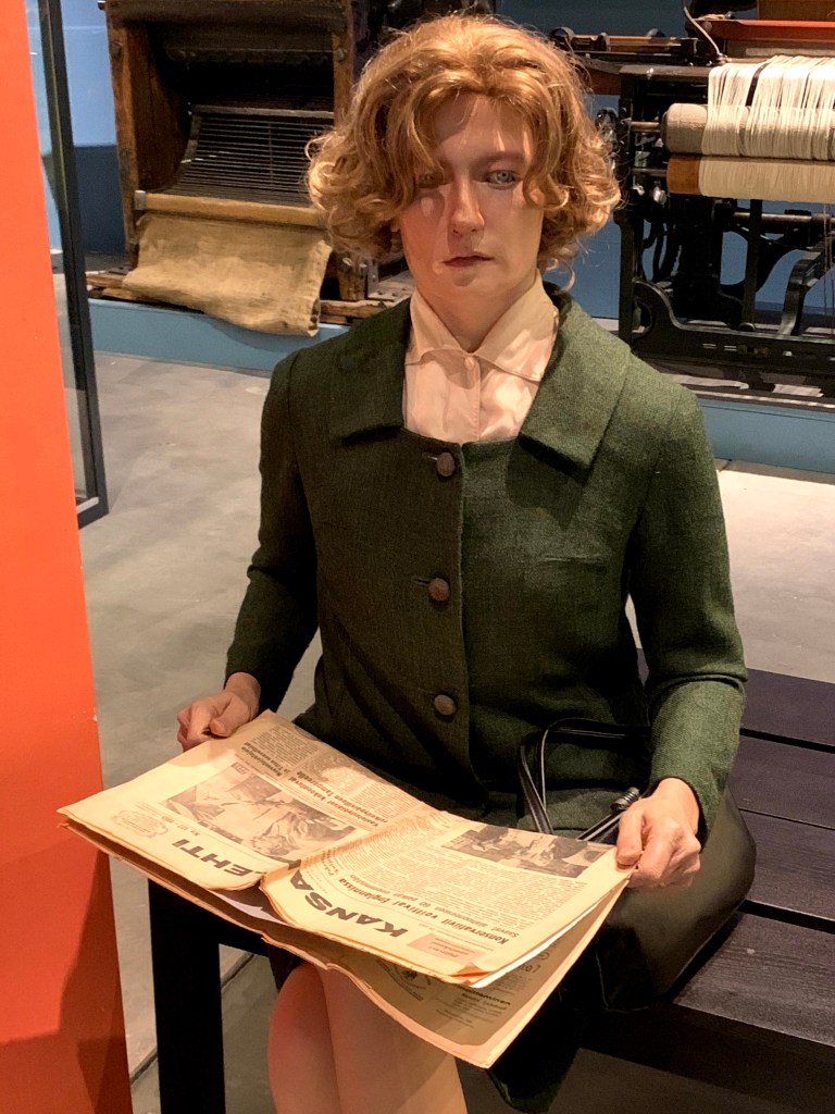 Last week I had the opportunity to travel again to Tampere, a lovely old city about an hour and a half away by train. This was my second visit to Tampere and I happily visited the museums that had been closed the last time I was there: the Lenin Museum and the Workers Museum. This old mill town is considered to be the birthplace of the Soviet Union because Lenin and Stalin met here to plan their revolution and agenda for Russia. The museum is small but fascinating. I also enjoyed walking around without worrying about ice on the sidewalks, as I did in February, and without my huge parka.